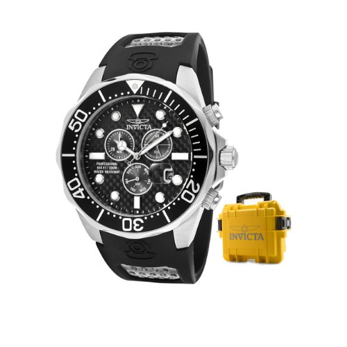 ## 1.Invicta Men's 12571 Pro Diver Chronograph Black Carbon Fiber Dial Black Polyurethane Watch with Yellow Impact Case